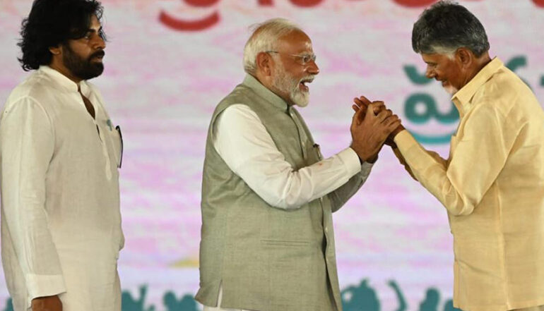 ఆంధ్రప్రదేశ్ రాష్ట్రంలో ఎన్డీఏ కూటమి ప్రభుత్వం కొలువుదీరింది. ప్రధాని నరేంద్ర మోదీ, కేంద్ర హోం మంత్రి అమిత్ షా, బిజెపి జాతీయ అధ్యక్షుడు జేపీ నడ్డా సహా పలువురు రాజకీయ, సినీ, వ్యాపార రంగాల ప్రముఖుల సమక్షంలో అంగరంగ వైభవంగా జరిగిన కార్యక్రమంలో...